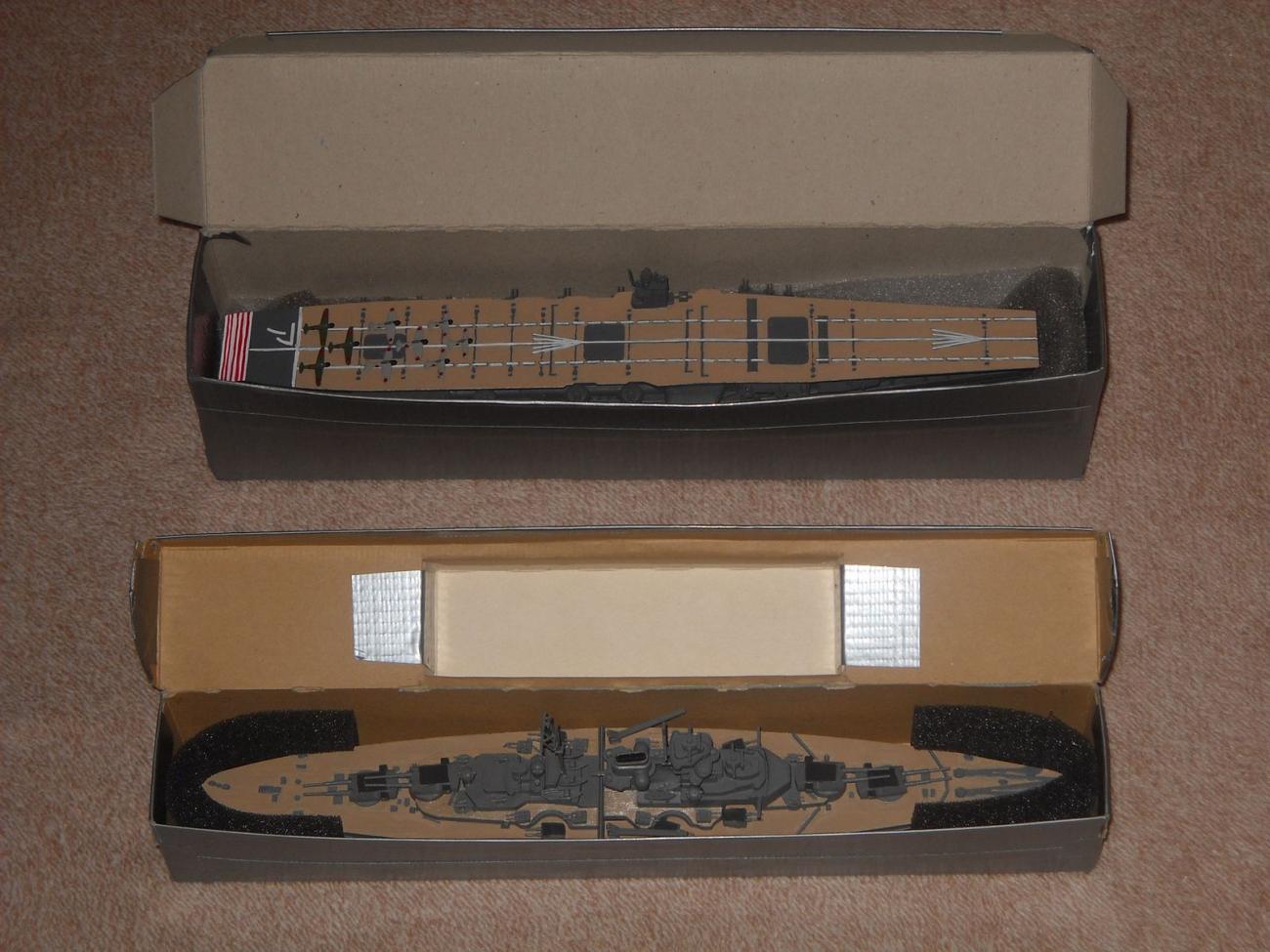 V obou případech šlo také o plastikové stavebnice (Bismarck od Academy, Akagi od Marui), ovšem spíše hračky než seriózní modely. Již od výrobce koncipované jako volně plovoucí a obsahující pro ten účel všechny potřebné díly. A to je právě pro mě zajímavé, protože mě dostatečně neuspokojují čistě statické modely, ale dávám přednost modelům funkčním, především RC. I zde by bylo jistě zajímavé postavit modely jako řiditelné, ale vzhledem k rozměrům (oboje délka cca 30 cm) by to pro mě byla značná výzva. Raději jsem se tedy rozhodl nekomplikovat si život a zůstat pouze u volně plovoucí verze.