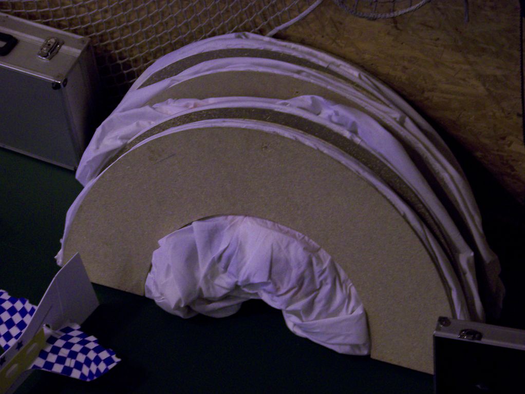 Co se mi na všem líbilo asi nejvíce, byla technologie samotných pylonů. Každý je tvořen kruhovou základnou snad z dřevotřísky, kterou lze ještě v polovině přeložit. K tomu je přidělán kužel z nějaké neprodyšné šusťákoviny a celý vtip spočívá v tom, že u základny je malý otvor s větráčkem z PC, který po připojení akupacku během chvilky vžene dovnitř vzduch a pylon se krásně nafoukne. Po nárazu letadla je slyšet rána, pylon se třeba zdeformuje, ale po chvíli se opět narovná. Geniální.