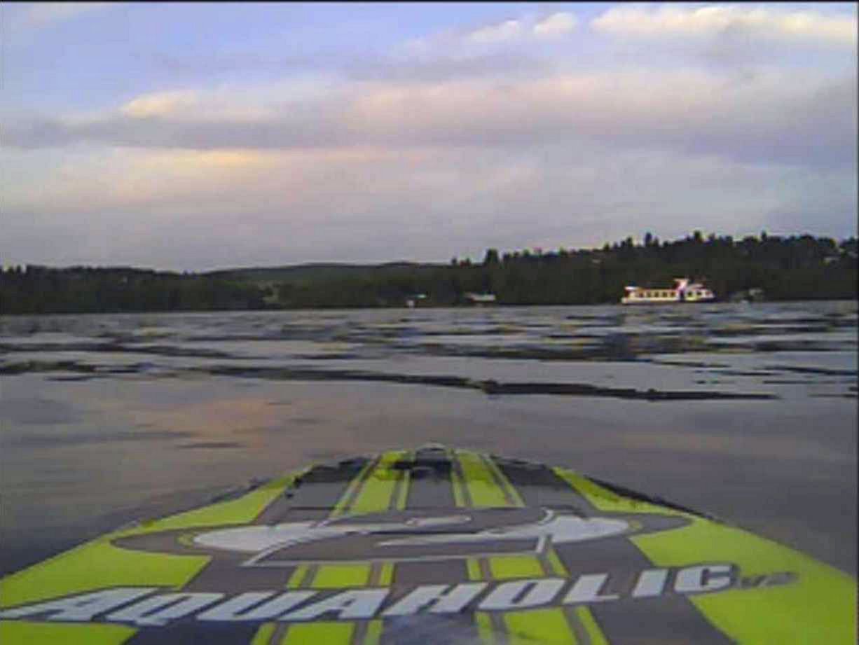 Ty vedou těsně kolem video vysílače a jsou potřené také tepelně vodivou pastou. Zde mi vznikl menší neplánovaný problém. Po zasunutí trubiček, (které jsem zasunul za vyložení menší síly) se mi kabina trošku vzpružila a kamera tudíž nemohla být na místě předního skla, protože by měla špatný sklon úhlu záběru. Tudíž jsem otvor předního skla mohl zadělat. Pro tuto akci mě napadlo využít laminovací fólii. Vypadá to zajímavě když vidíte ještě prosvítat modré světlo z video vysílače. Nicméně jediná možnost kam dát tedy kameru bylo na střechu lodi. Na kryt kamery jsem použil plexisklo. Změřil jsem kameru, naměřil obdélníčky. Kameru jsem přilepil tavnou pistolí a těsně za kameru vyvrtal ještě otvor pro kablíky. Nyní jsem začal přilepovat tavnou pistolí dílky plexiskla tak, že jsem první přiložil těsně na objektiv kamery, abych co nejvíce zamezil nežádoucím odrazům a odleskům. Uvnitř kabiny jsem vše zapojil a opět jsem využil laminovací fólie, do které jsem si udělal otvor pro kabel napájení a zase fólii řádně přilepil na spodní část kabiny. Vzniklé otvory jsem ještě dolepil lepidlem a pro jistotu ještě dozalepoval tavnou pistolí. Nyní je celý systém dokonale uzavřen. Napájení FPV zajišťuje baterie Li-Pol 2S 850 mA a lze napojit i na balanční konektor baterie, která pohání samotnou loď. Samotný obraz není úplně ostrý díky analogovému přenosu a jízda poté je už spíše záležitosti rekreační pomalé plavby.