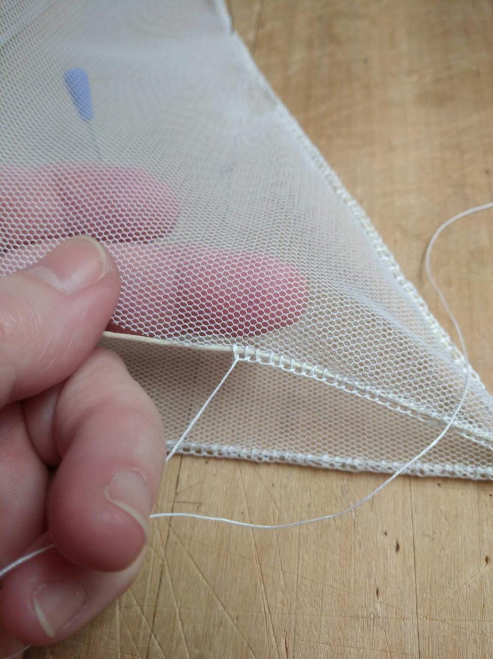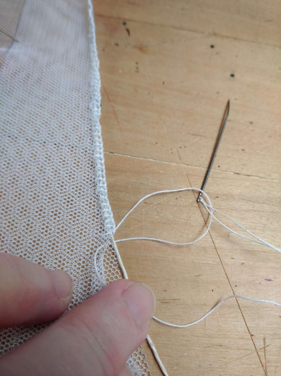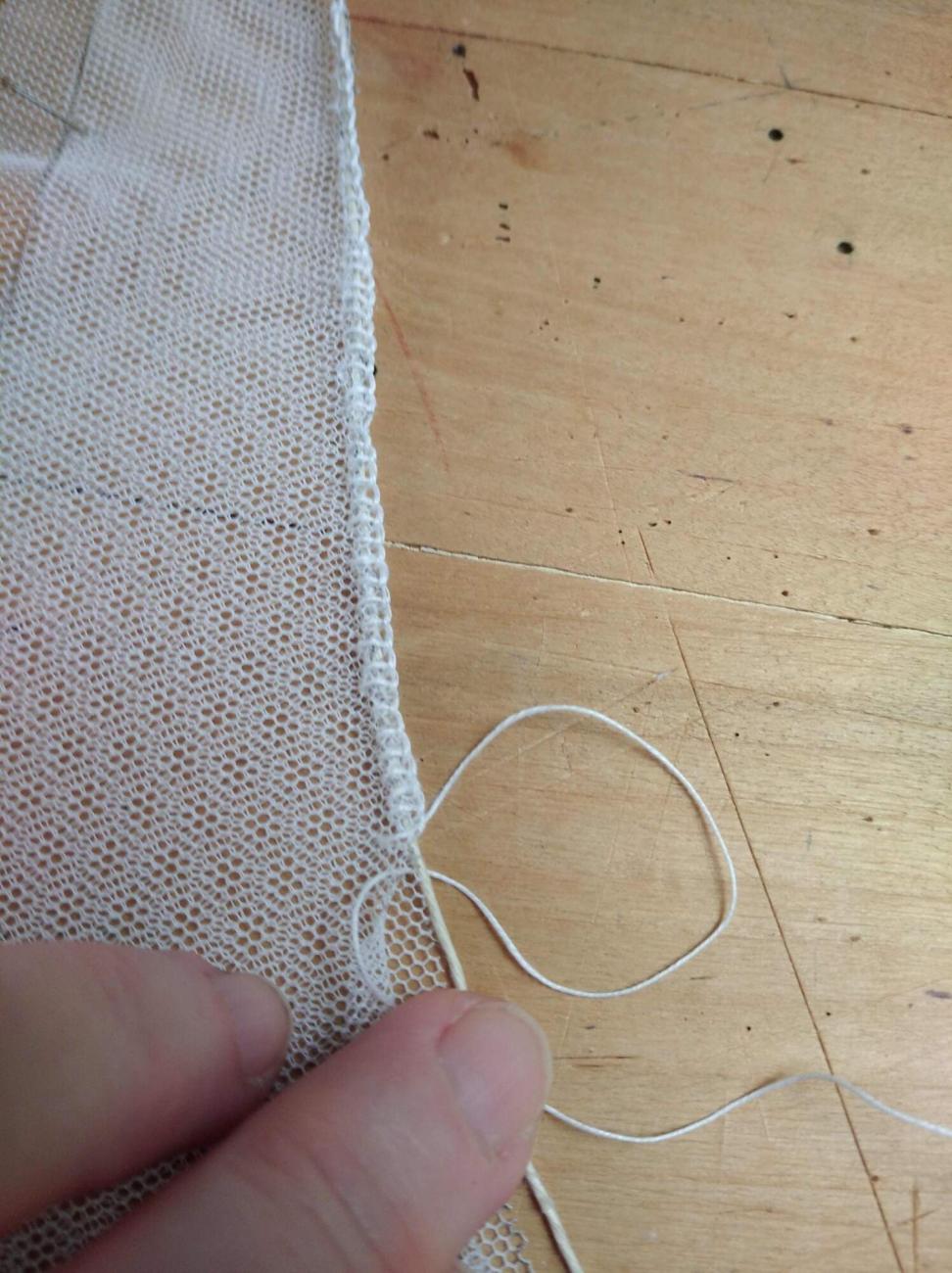 A proč jsem vlastně sítě sám nešil, ale ušila je moje manželka? První síť jsem sice ušil kompletní, ale bohužel jsem zvolil špatný postup. Lano po obvodu jsem totiž u lovícího otvoru sítě (u obručí ráhna nesoucí sítě) přišil k spodnímu dílu sítě, u druhé obruče se vrátil zpět a sešil zase oba díly sítě k sobě. Bohužel to byla slepá cesta, celá síť se mi kroutila. Nelíbilo se mi to a tak jsem svoje šití celé vypáral. Po poradě s manželkou jsme přišli, jak to asi má být správně – lemovací lano 0,7 mm musí jít jen po obvodu horní straně sítě. U lovného otvoru bude druhé lano jen kolem obručí a na lemu spodního dílu sítě. Manželka se šití nakonec ujala sama a za 3 večery byly obě sítě hotovy a přišity k obručím ráhen (omlouvám se, ale nenašel jsem přesné české názvosloví pro tato ráhna a obruče těchto sítí).