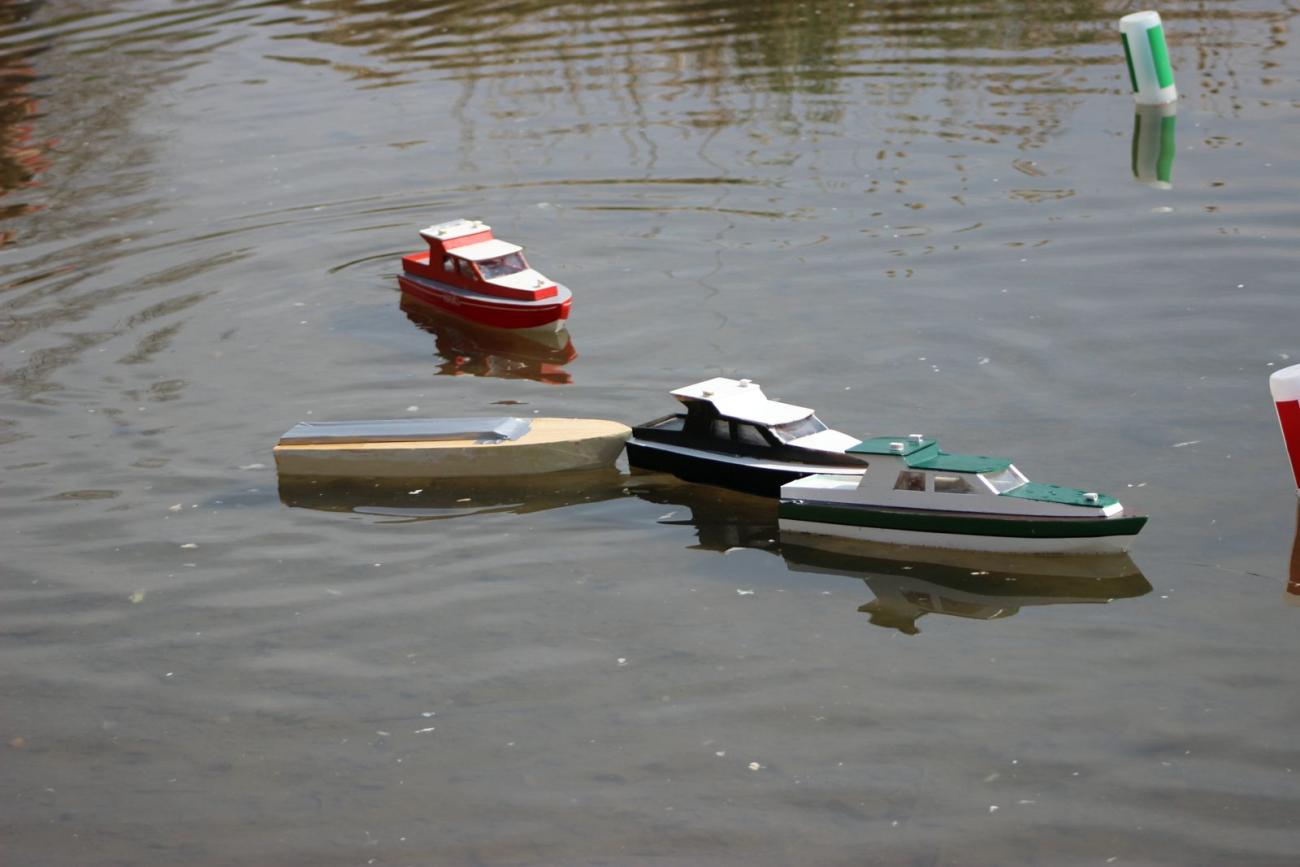 Vodní hladina se brzy proměnila v pestrou přehlídku modelů nejrůznějších kategorií. Byly zde k vidění elegantní jachty a mrštné čluny, robustní pracovní a obchodní lodě, včetně impozantní kontejnerové lodi, a nechyběly ani modely válečných plavidel. Zvláštní pozornost si právem vysloužila detailně propracovaná majáková loď, jejíž fotografie potvrzuje, že se jedná o typ modelu, který na podobných srazech není běžný.