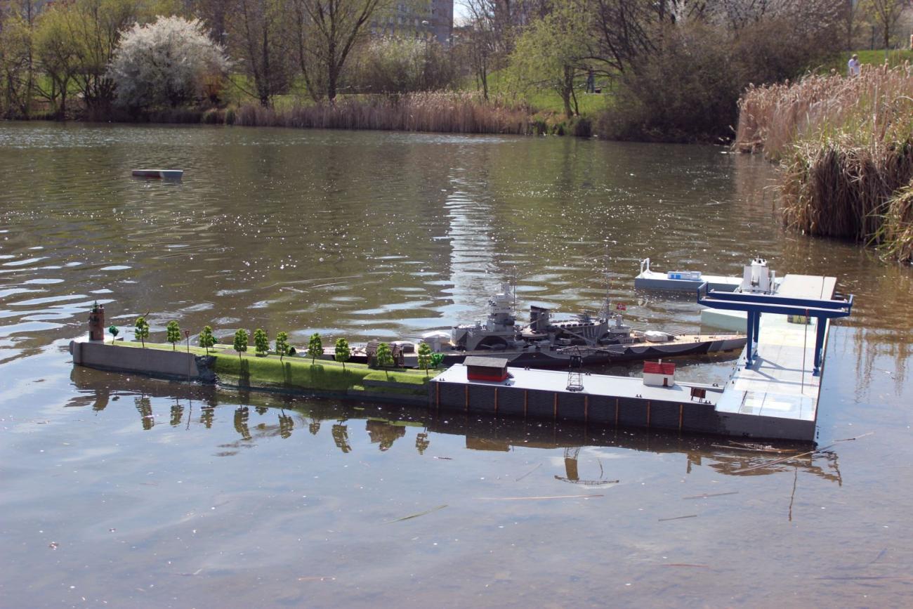 Následující část odpoledne patřila volným, nesoutěžním plavbám všech, kteří si na Lužiny přivezli své modely. Aby břeh rybníka získal ještě atraktivnější vzhled, modeláři s pečlivostí postavili malé modelové molo s útulným přístavištěm. Fotografie jasně ukazují, s jakým zaujetím pak všichni sledovali, jak k molu začaly elegantně připlouvat a kotvit různé lodě.