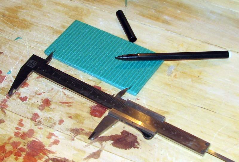 2) Nejlépe z plastové destičky (jinak postačí třeba "tácpron") vyřízneme obdélník, který bude cca o 40mm delší než je rozteč hřídelí kormidel a zhruba o 20mm širší, než je max. šířka kormidla. Na destičku si nakreslíme profily kormidel tak, aby byly rovnoběžné a vzdálenost os profilů byla rovna vzdálenosti středů os hřídelí kormidel.