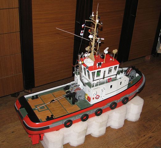 Taky bylo uděláno zábradlí, ale málem to byla konstruktérova smrt. Na střeše kormidelny bylo zábradlí vypuštěno raději úplně. Hlavním důvodem byla „šikovnost“, ale také nebezpečně vzrůstající hmotnost nástaveb. Dodělány byly různé kryty a dvířka, hasící přístroje, záchranné kruhy a další drobnosti, včetně výstražných tabulek a nápisů. Remorkér se tak „zachlupatil“ a už nevypadá jak z dětské stavebnice.