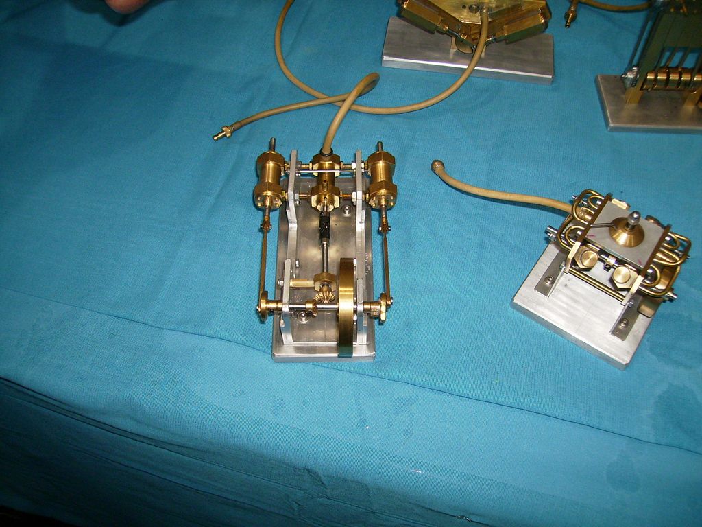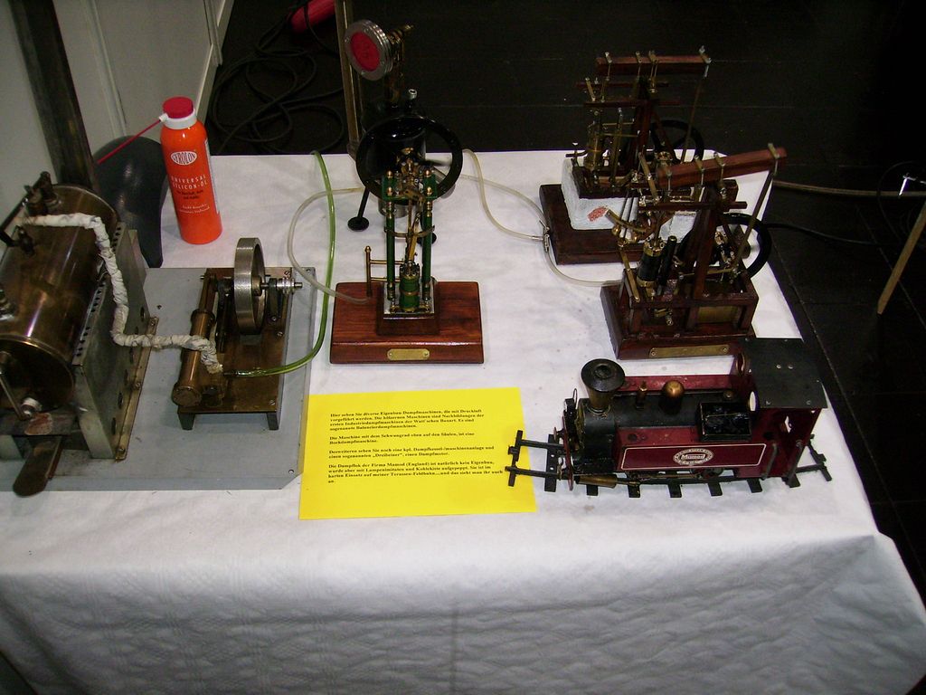 Bohužel, nic zvláštního jsem neobjevil, už jsem asi nasycený až zpovykaný ze všeho. Za posledních asi 120 Eur jsem zakoupil pár potřebných věcí: lodní šrouby (zatraceně drahé - 27 Eur/kus), samozřejmě dvě serva po 4 Euro u Konráda, ve stánku STEBA kuželové ozubené kolečka na pohon královského hřídele (buď pro stroj Sirius nebo pro pohon rotačního šoupátka), dceři nějakou hračku větrného mlýna pro děti za 9, krásné Ms trubičky 8, 12 a 15 mm s leštěným povrchem i vnitřkem na oscilační válce, asi zubařské frézičky po 6 Euro a ještě mi zbylo na Bratvurst s žemlí...