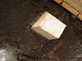 jsem zhotovil první část dna, viz foto. Všechny díly jsem před položením lehce navlhčil rozprašovačem, vytvaroval
