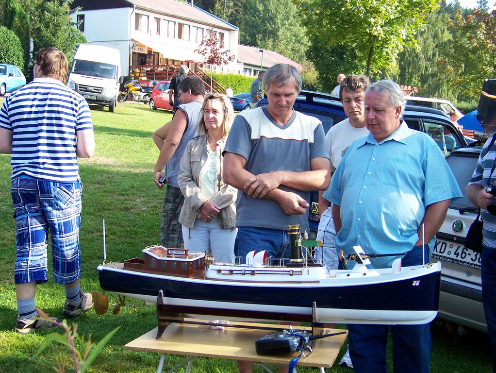 Během polední pauzy, kdy na všech startovištích panoval klid, šel Tomáš Kočí testovat odhadem dvoumetrový parník K147. Díky dvěma lodním šroubům může model manévrovat i na malém prostoru, a to za přispění protitahů. Než se povedlo roztopit pod kotlem, okupovala závodní dráhu jedna „káčková“ plachetnice s délkou trupu 1,9 m. Obecně lze říci, že pauz hojně využívali různí modeláři k prohánění modelů mimo soutěž.