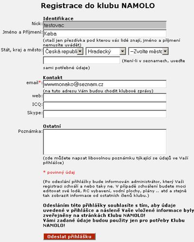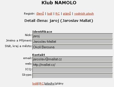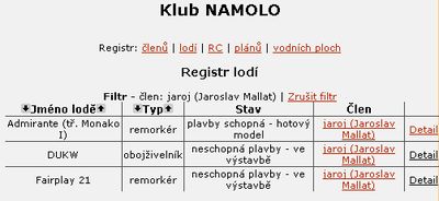 Největším problémem nových stránek je jejich naplnění. Po zvážení všech možností jsem se nakonec rozhodl, že začneme na zelené louce a všechny členy Klubu NAMOLO! poprosím, aby je znovu naplnili. Bude se jednat o jakousi inventůru údajů, které jste v průběhu let uvedli. Tím, že uvedete některé údaje o sobě a svých modelech potvrdíte svoje členství v Klubu NAMOLO! a pomůžete tak vytvořit jedinečnou databázi lodních modelů v ČR.