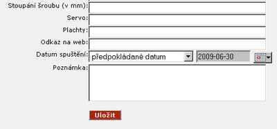 Odkaz "Mé lodě" - po kliknutí na tento odkaz se Vám seznam lodních modelů, které jste do registru již evidovali. Případě, že chcete přidat nový model, klikněte na konci seznamu u levého okraje na odkaz "Přidat". Zobrazí se Vám formulář pro evidenci lodního modelu.