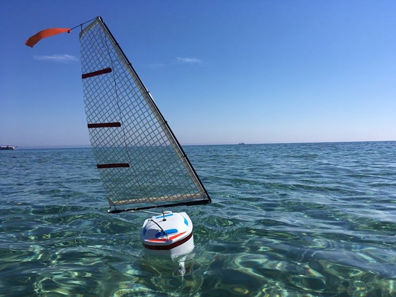 ) k překvapení bez problému držela kurs, i když občas z dolíků mezi vlnami vykukovala půlka plachty. Nutnost je držet dostatečnou rychlost (na bočák doslova co to jde), najíždět vlny trochu šikmo a na vrcholu jít (pokud chceme) do obratu (zhoupnutí na hřebenu vlny loď odlehčí) - kormidlo plynule vychýlit naplno do požadovaného kursu za plynulého přitahování plachty a po dotočení obratu do požadovaného kursu ji zase povolit a nastavit na potřebný úhel. Hlídat rychlost je opravdu základ! Serva se moc často nezastaví a je dobré pro klid mít dostatečnou kapacitu akumulátorů, a hlídat trochu čas - utíká rychle.