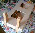Bylo rozhodnuto a začal jsem stavět známý trup z topolové překližky. Bočnice z 5mm a dno z 3mm silné. V rozích je trup vyztužen nosníky 10x10mm a stejně tak i lem pod palubou. Na místa úvazníků přišel nosník 20x5mm. Kýl je z 2mm silné letecké překližky. Veškeré spoje byly lepeny vteřiňákem a trup byl do hodiny hotov.
