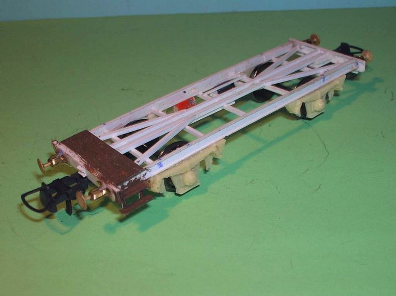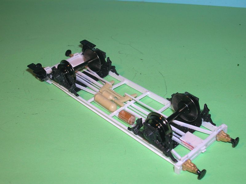 Na stavbu kostry spodku vozu je použito evergreenu. Rozsochy a brzdařskou budku jsem koupil na burze od