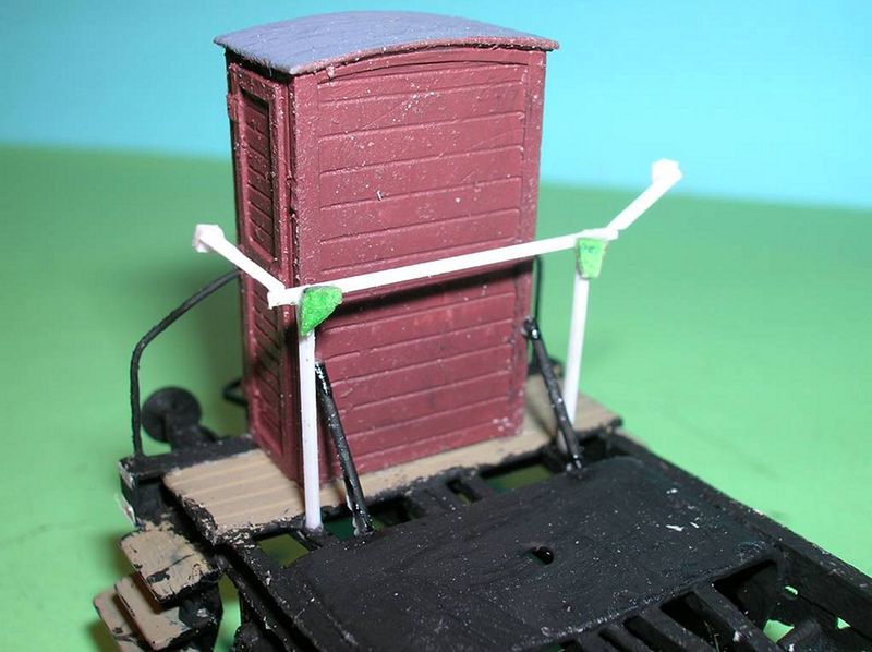 Brzdařská budka od BV-modelu, zábradlí a rám na návěstní svítilny.