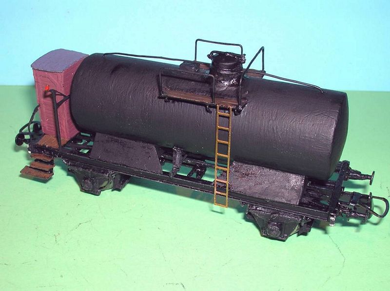 Kotel pochází z dřívější zásoby od firmy Piko. Podélné lávky se zábradlím na jímce, montáž plnícího otvoru a žebříku pro přístup k podélným lávkám.