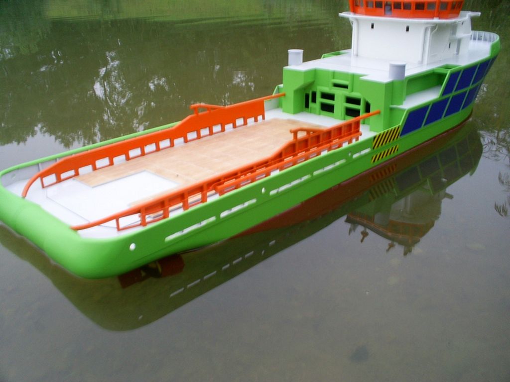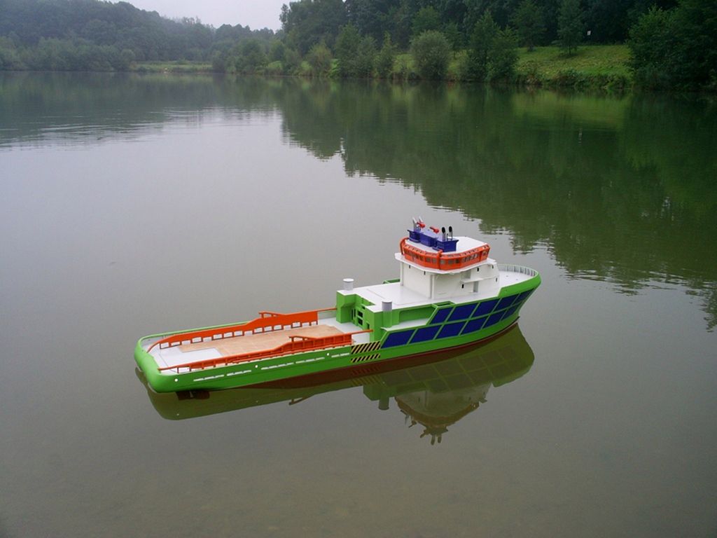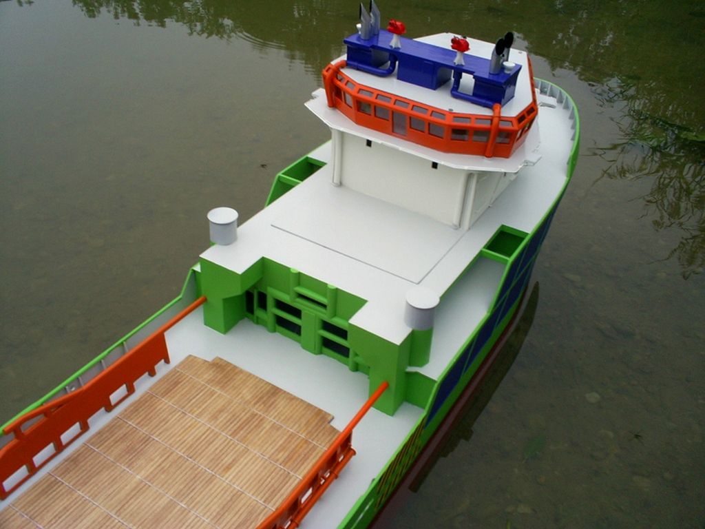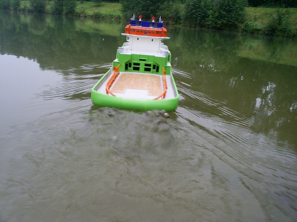 Pokud by byl nasazen do soutěžních plaveb v TT, tak ani tam by s regulací pomocí příčných pohonů tak jak je teď nebyl problém. Moje remorkéry měly příčné pohony vždy jen na přepínač typu jede/nejede. Žádná regulace a taky žádný problém :-)