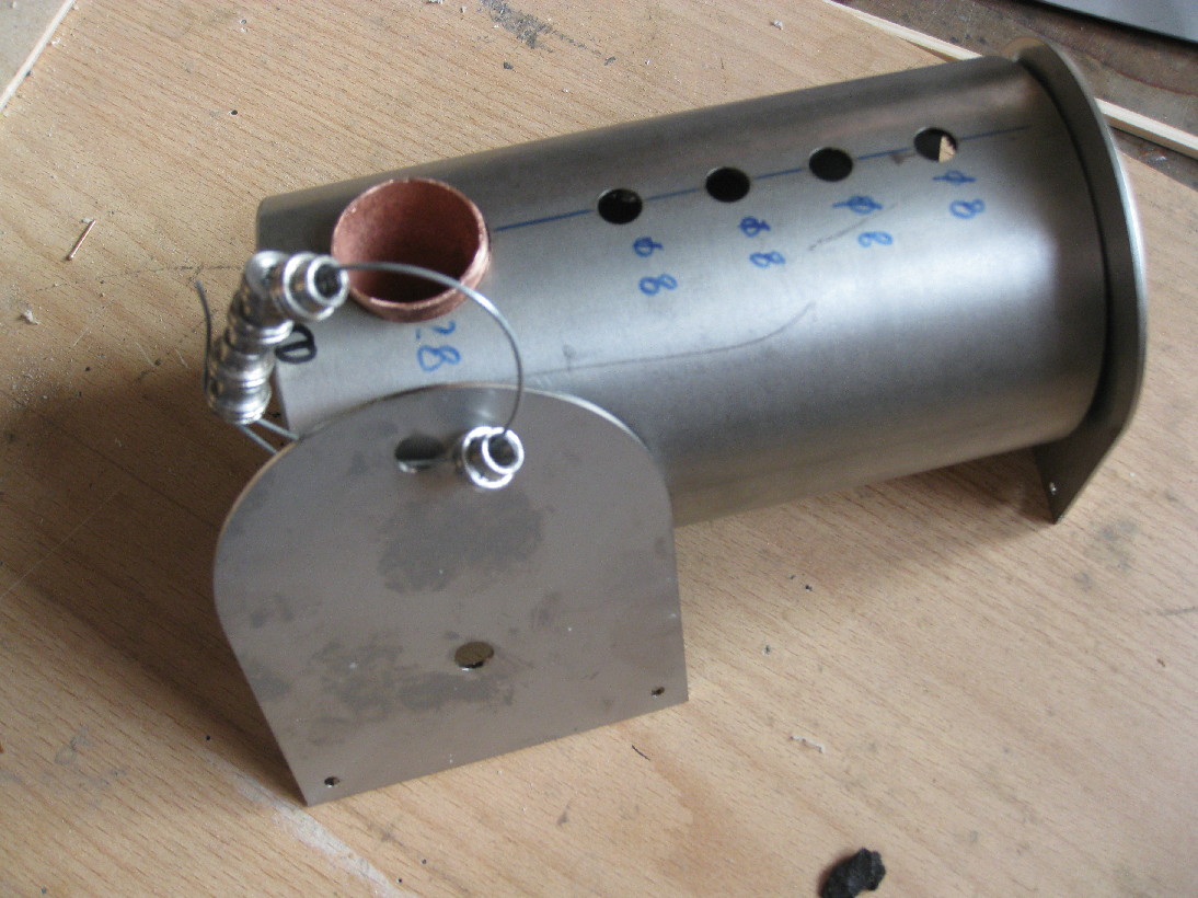 Kotlík po zvarení, privarení niplov a po pripájkovaní oboch koncov plamencovej rúry