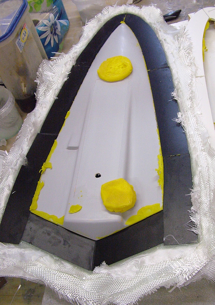 Vlastní forma je vytvářena ručním kladením jednotlivých vrstev. Jednotlivé vrstvy výztuže jsou štětcem prosycovány iniciovanou pryskyřicí. Jako laminační pryskyřice je použit Epoxid L285 míchaný v poměru 100:40 hmotnostní poměr (objemově to je 100:47, funguje ale i 100:50) a jeho cena je 700 Kč/kg.
