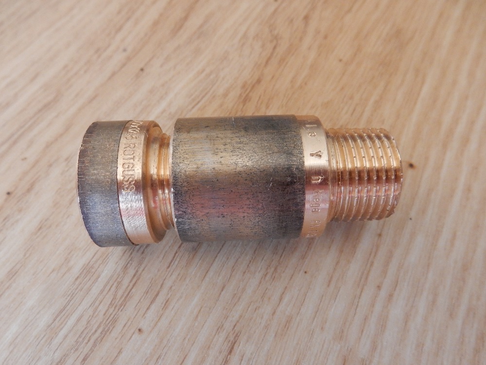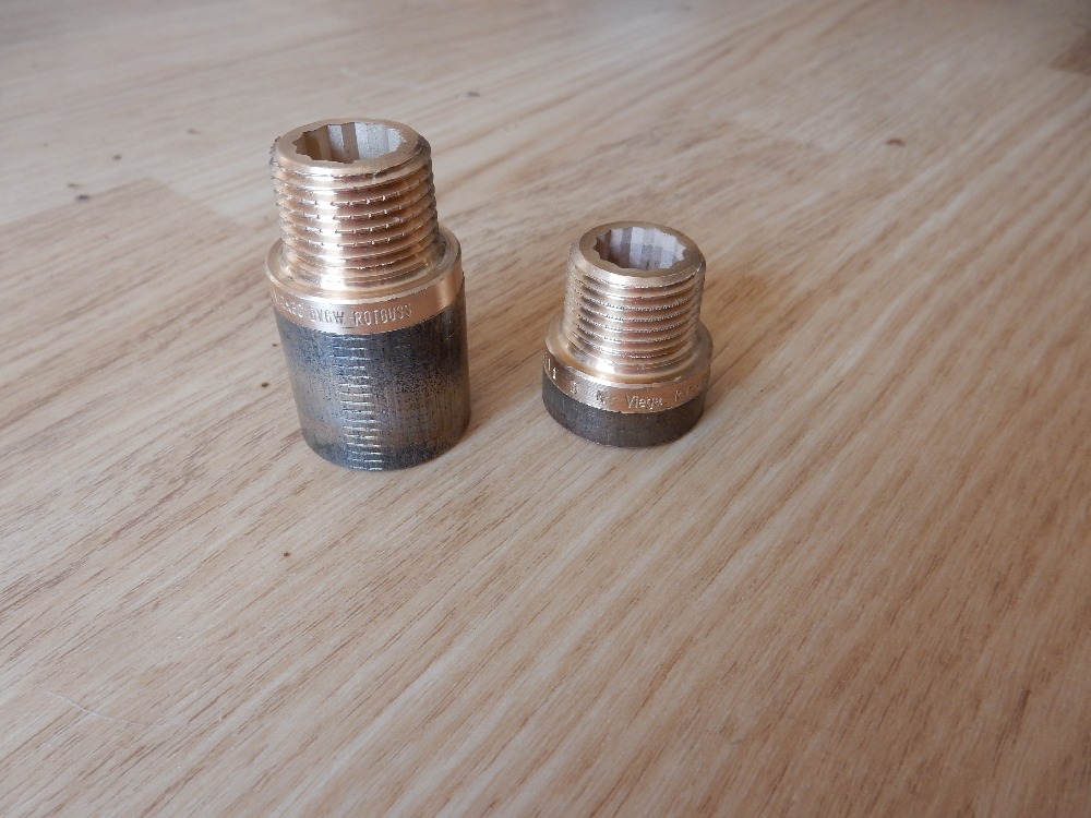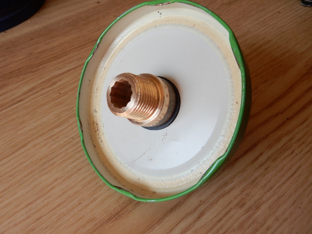 Pro napojení kompresoru, jsem na vstup do plechového víčka použit mosazné fitinky ½”, které se ve vodácké řeči nazývají „prodloužení”.