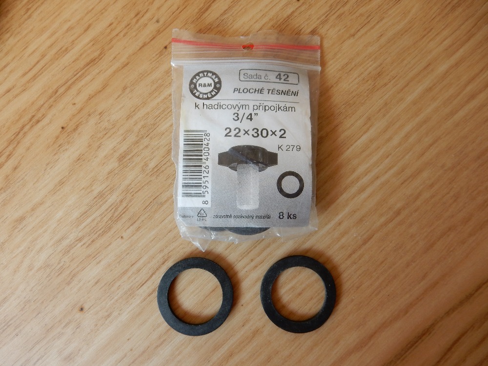 Teď můžeme víčko zkompletovat. Na prodloužení 30 mm nasuneme 2 ks těsnění, vsuneme závitem do otvoru ve víčku, opět nasuneme těsnění a našroubujeme prodloužení 10 mm.