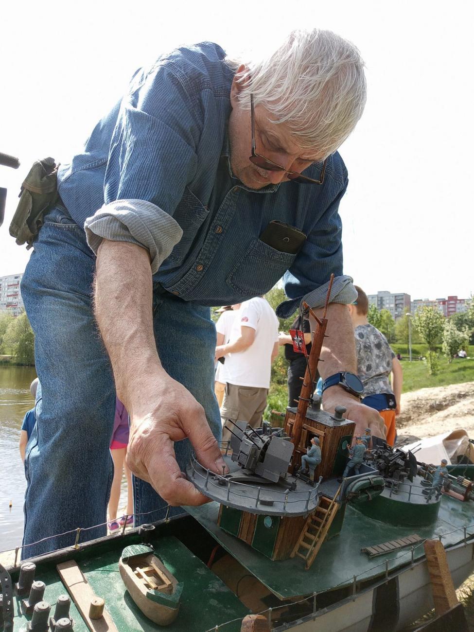 Jak na fotografiích vidíte, nebyl žánrově vyhraněný. Když frčel Tug Towing, stavěl remorkéry, když se rozjel Minisail.cz, byla to plachetnice HMS Speedy. Tu nám ukázal asi jen v létě 2017 na Proseku, o něco častěji vzal k vodě Footynu. S tou ho máme zachyceného naposledy, když mezi nás přišel na Podzimní Prosek 2024. To už měl hotovou i ponorku a oprášil polostavebnici parního stroje z odlitků… Prostě modelařil do posledních chvil a ještě 23. prosince nad ránem se naposledy přihlásil na náš chat.