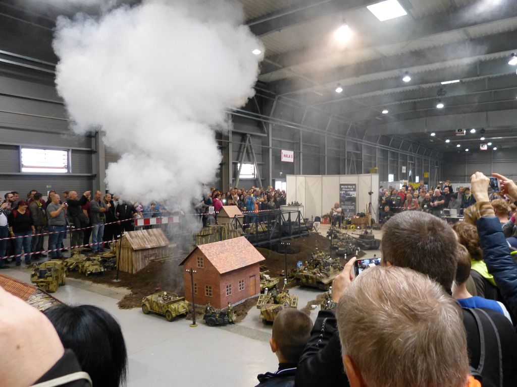 Sice píšu hlavně o lodích, ovšem po příchodu do haly s bazénem jsem nemohl přeslechnout a přehlédnout tankovou bitvu. Kolem té se tlačenice lidí utvořila. Jinak jsem o lidi v halách s modely nezakopával. Většinou krátce nahlížím i do hal souběžných výstav, jenže to se letos nedalo. Hned u dveří té pro „počítačové pařany” byl takový nával, že jsem své úsilí vzdal.