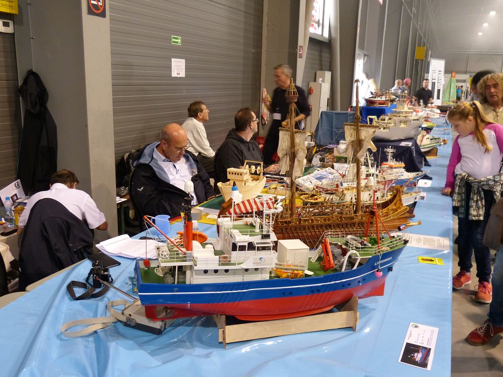Na výstavišti v Letňanech se až na pár posledních mohykánů nic moc zakoupit nedalo. Novinkou oproti minulým ročníkům bylo, že expozice modelů lodí německého klubu IGS Marktschwaben nebyla přímo kolem něj, nýbrž přes uličku. Diváci tak mohli, pokud by na to přišlo, obstoupit bazén z více stran. Zda v některou chvíli kolem bazénu postával dav, nedokážu říct. Ale v sobotu odpoledne tam žádné velké davy nebyly, třebaže se lodní modeláři o provoz na vodě snažili ze všech sil.