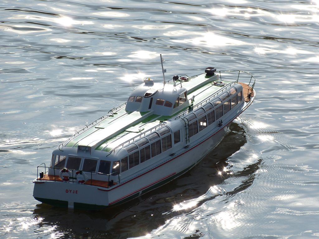 Nicméně vítr příliš nefoukal, a tak moje Footyna zůstala v autě. Myslím, že přítomní o nic nepřišli, když jí na vodě, ani na břehu neviděli. Ke kochání tam byly jiné modely. Mne krom plachetnic pochopitelně nejvíce zaujal parníček African Queen, jež na jedno zatopení brázdil hladinu neskonale dlouho. Myslím, že by na klidné hladině půlhodinovku zvládl s přehledem a patřil mezi favority. Celkový dojem kazila plynová kartuše, která i z dálky působila jako pěst na oko.