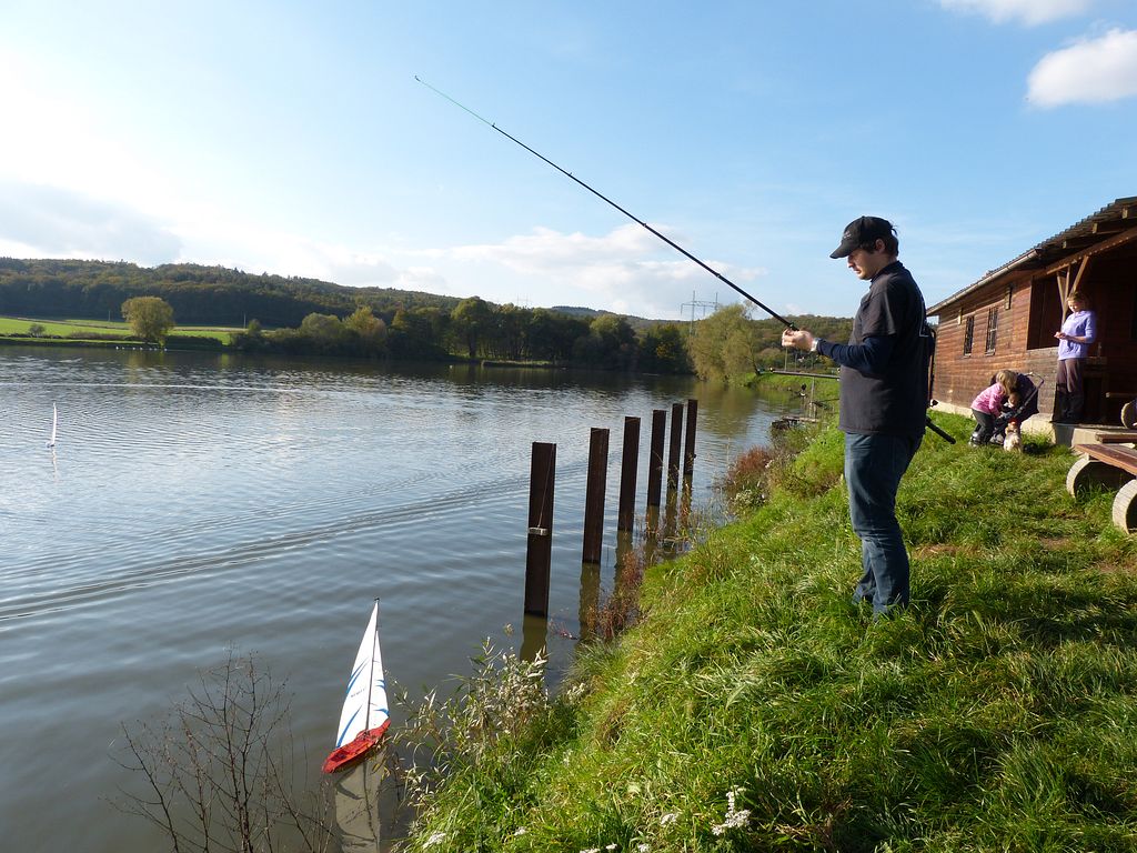 U vody je asi 50 modelářů a bezpočet diváků. Někteří místní si plnili svůj dětský sen a za popíjení z půllitru brázdili vodní hladinu s nejrůznějšími modely, jelikož hospoda měla otevřeno a slunný den přímo vybízel si sednout na její terasu. Hned na úvod mě upoutala plachetnice Bluenose, což bylo příslibem, že její stavitel Michal Medvěděv (Šurda) nebude daleko. Nebyl, ačkoli byla ve hře i možnost, že model prodal. Patří totiž k těm, kteří každé jaro představí nový model.