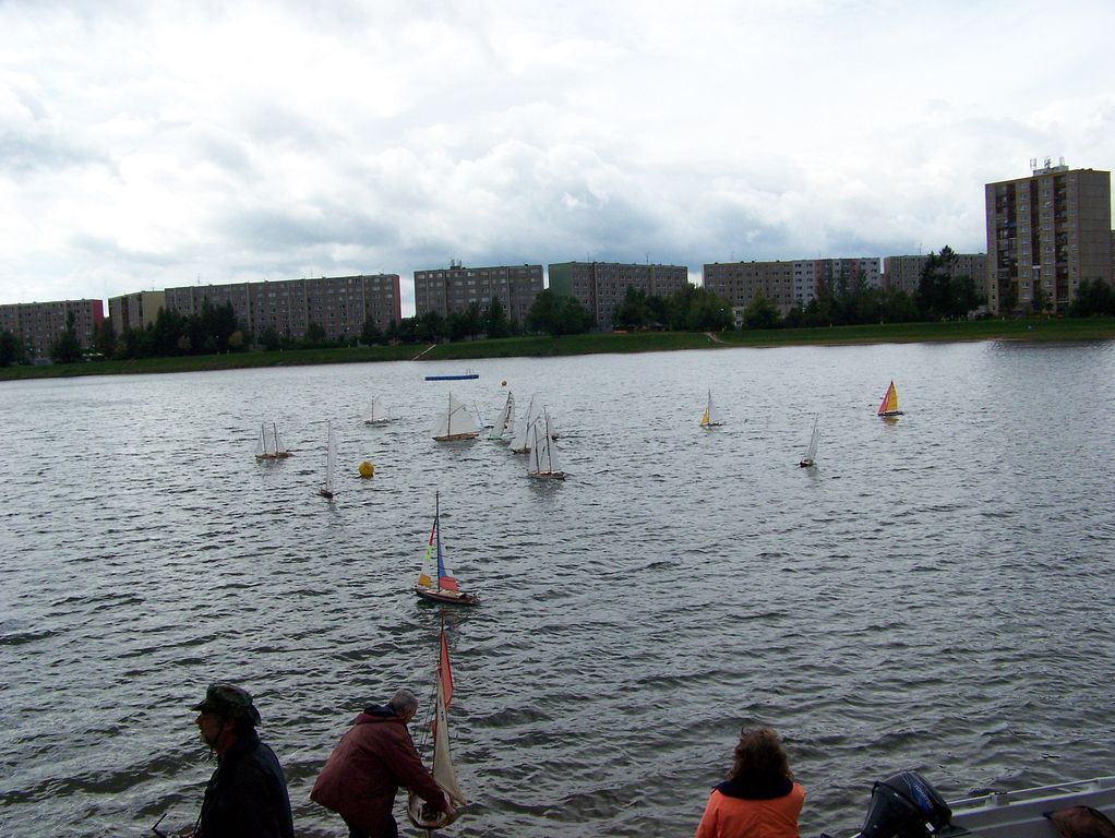 Tady to bylo „jiný kafe“. Sice jsme přišli akorát na „obědovou přestávku“, ale to nevadilo. Alespoň byl čas obdivovat modely na břehu a udělat pár fotek. Kolem půl druhé se kapitáni plachetnic začali scházet a připravovat své modely na vodu. Jenže zrovna v tu chvíli se příroda rozhodla, že si trošku zašpásuje - „když už finále, tak ať ukážou, co umějí“. Úderem 14:00 h bylo odstartováno a začal ten správný adrenalin. Vítr foukal tak, že téměř všechny lodě ležely stěžni rovnoběžně s hladinou a ty co tak neučinily, byly v různých pózách hnány zpět na břeh. V ten okamžik se ukázalo, že kapitáni svému řemeslu opravdu rozumí a přinutili plachetnice vyrazit vstříc obzorům navzdory přírodě a jejím rozmarům. Je sice pravdou, že po pár kolech byla téměř polovina plachetnic na břehu s různými závadami - urvanými lany počínaje a půlkou přehrady v podpalubí konče-, ale o to víc to bylo divácky zajímavější.
