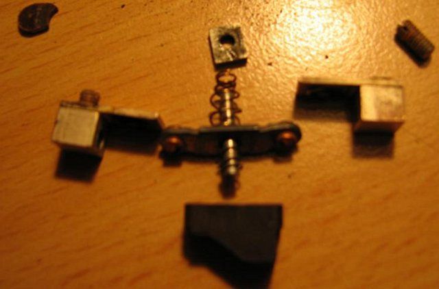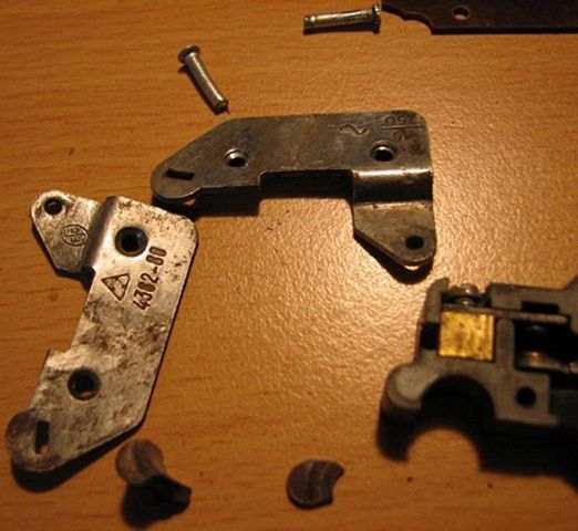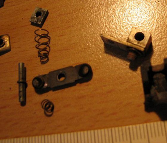 bude nutno vložit příčnou pružinu a pak správně plech záchytky a to celé zajistit tim , co vypadá jako nastřižená podložka