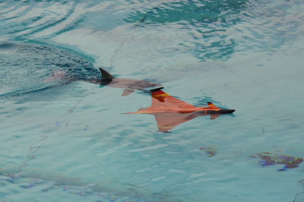 Když už jsem se tentokrát zaměřil víc na kuriozity, než na „seriózní“ modelářskou a maketářskou práci, musím ještě zmínit něco, co by bylo skvělou hračkou i ve větších zahradních bazénech. Norbert Brüggen upravil plastové letadlo Eurofighter Typhoon na jednoduchou dynamickou ponorku s neuvěřitelnou obratností a slušnou rychlostí. Vidět společnou stíhací plavbu Typhoona a delfína bylo hodně zajímavé.