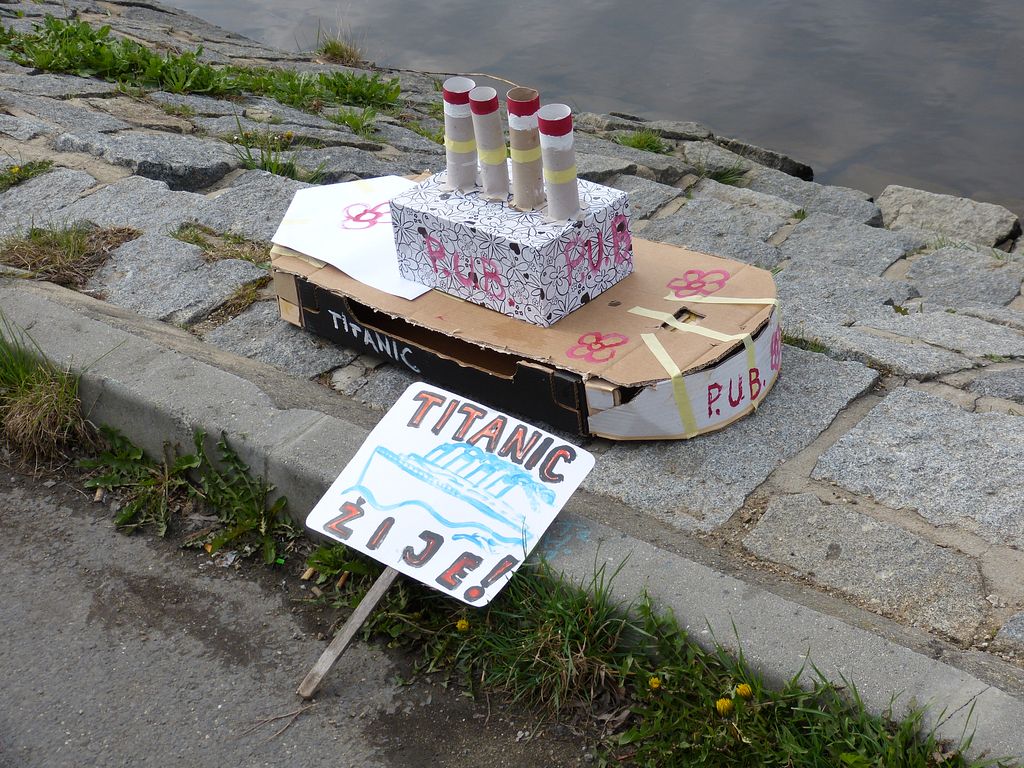 V sobotu 14. dubna 2012 v půl desáté dopoledne šly všechny obavy stranou. Speciálně pro tyto účely vzniklo z několika kartonových bedýnek a krabic plavidlo, které vzdáleně připomínalo Titanic a mělo nejlepší předpoklady stát se záhy modelovým vrakem. Alespoň takový byl záměr tvůrců.