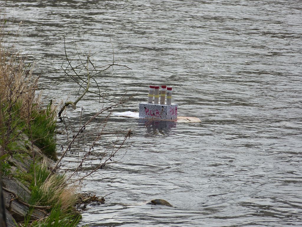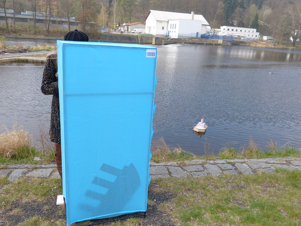 Ta myšlenka na kámen se záhy objevila, leč v okolí se žádný vhodný nepovaloval. Problém byl hlavně v tom, že ten karton byl zkrátka suchý i po nalití vody dovnitř plavidla.