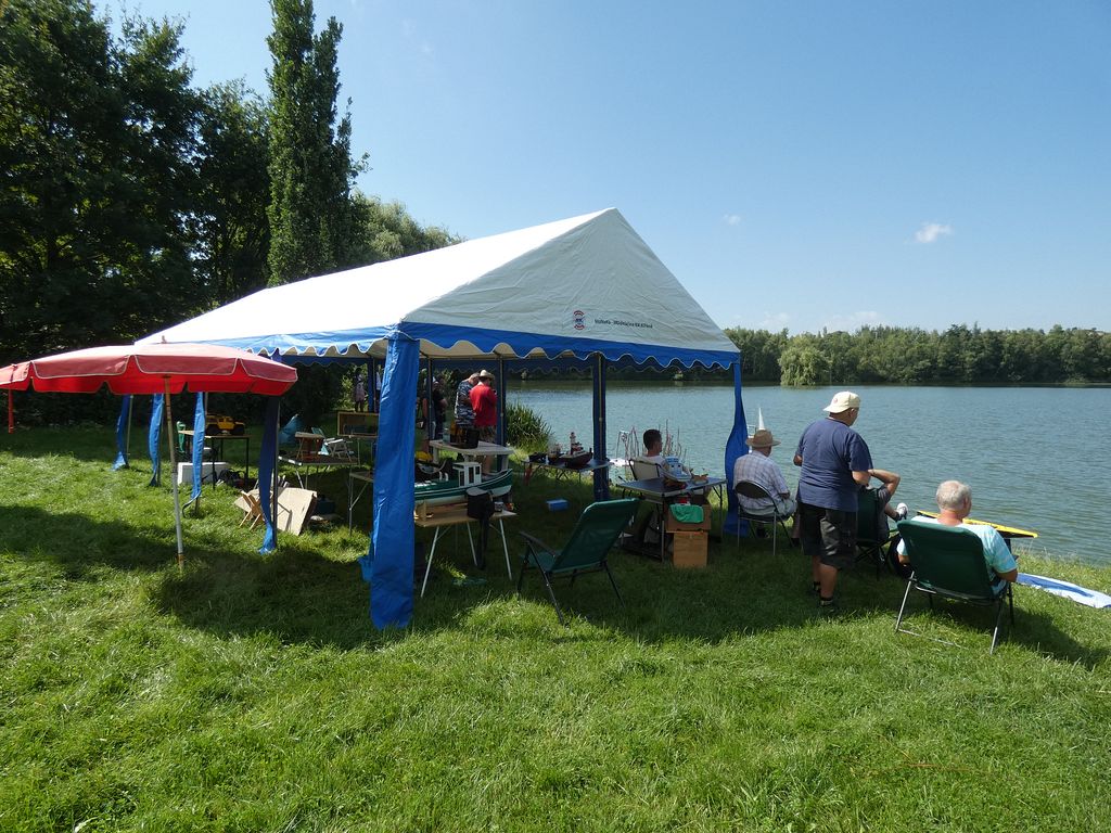 Tím, že jsme náš sraz zahájili v deset dopoledne, povedlo se vodní plochu pro lodní modely uhájit i během tropického odpoledne. Ne, že by lákala ke koupeli jako v dobách své největší slávy, ale několik plavců by se našlo.