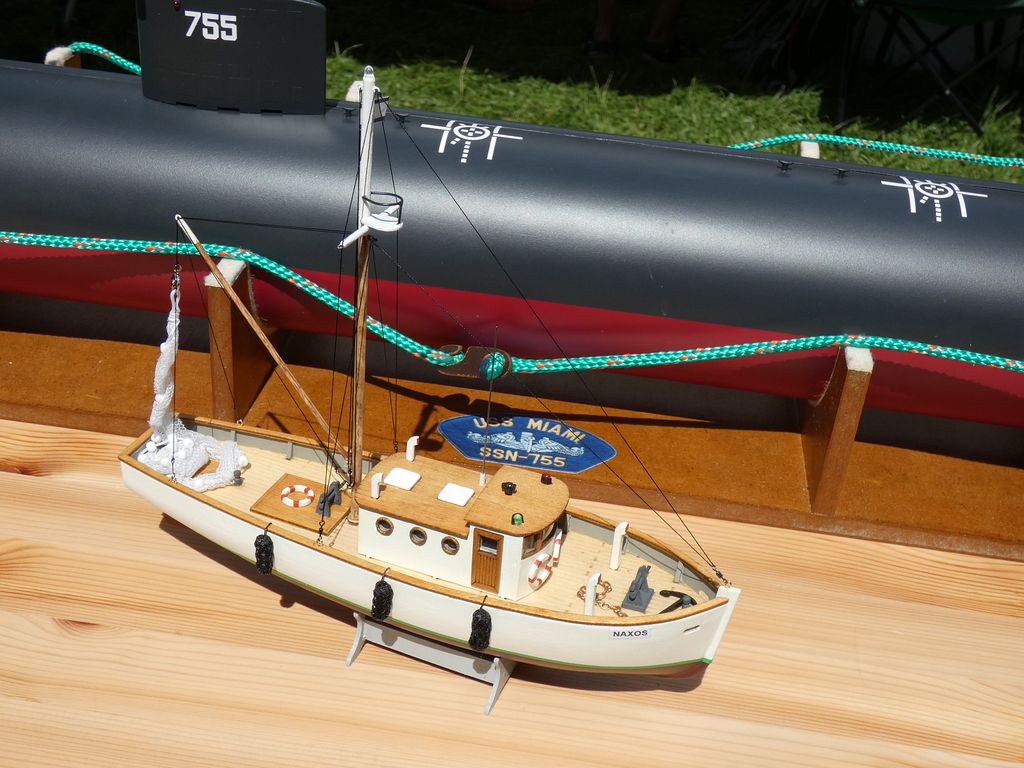 K vidění byly jak modely remorkérů, tak dva parníky, se kterými přijel Vladimír Šrámek. Renown již nějaký pátek pamatuje, ale Sella v Písku k vidění ještě nebyla. Strakonický modelář Václav Funda přivezl ukázat rozestavěnou ponorku USS Miami SSN‑755 a navrch přihodil miniaturního Naxose. Sám jsem po delším čase provětral trimaran Volans.