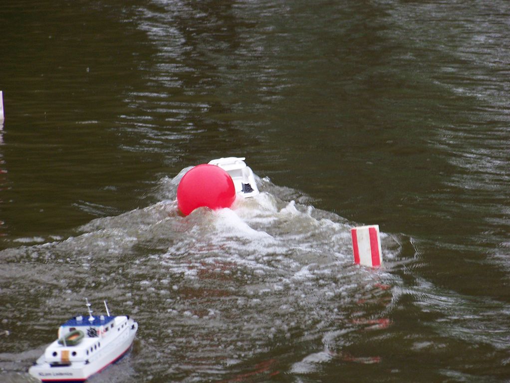 Byl jsem vyslán s první skupinou. Začal jsem docela nadějně, když jsem jako první propíchl cizí balónek. Záhy jsem sám dostal zásah a musel z vody. Obdobně probíhaly souboje dalších dvou skupin, aby se tři nejlepší dostali do finále. To se ukázalo jako nekonečné, neboť jeden z modelů přišel o svůj špendlík a druhý byl neovladatelný. Po povolených servisních úkonech zbytek finále proběhl bleskově.