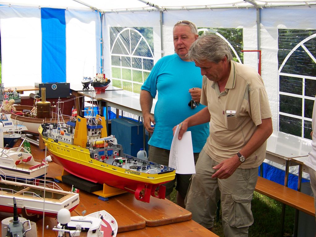 Po příjezdu jsem tedy zamířil rovnou k vyvěšené startovní, resp. průběžné výsledkové listině, abych se přesvědčil, jaká je situace. Objevil jsem alespoň dva rakouské parníkáře, což je pro pořádnou soutěž žalostně málo, ale narazil jsem i na jiná jména, která jsem rozhodně nečekal. Mám na mysli Štefana Abela a Petera Mikulku z dalekého Slovenska, se kterými se běžně potkávám na soutěžích maket plachetnic NSS. Tentokrát však naložili jiné modely, jelikož soutěž plachetnic na programu nebyla. Slovo modely není na místě, neboť oba přivezli nádherné makety.