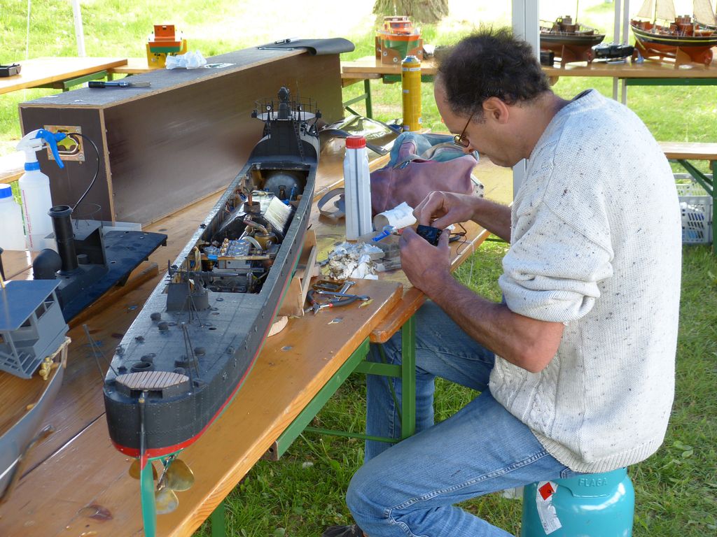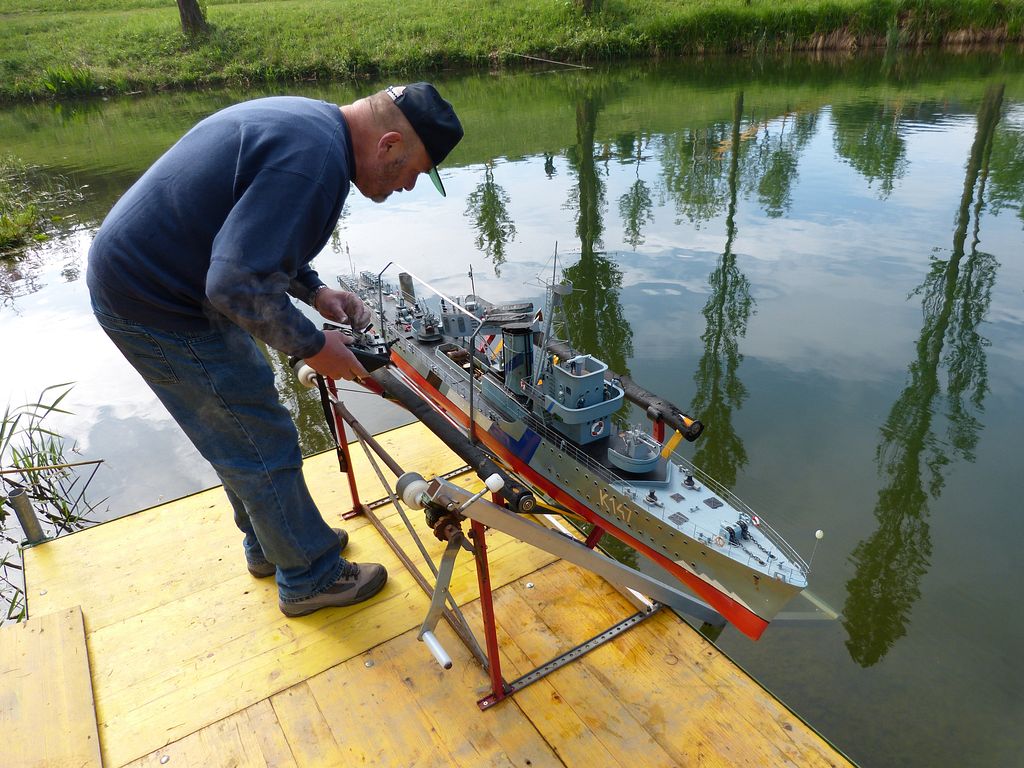 Půlhodinový závod byl po této nepříjemnosti odložen na později jako poslední bod sobotního programu u vody. Pak se na nebi začala objevovat temná mračna, až to vypadalo, že repete bude v dešti. To se naštěstí nepotvrdilo, a tak mohlo dojít k druhému pokusu, tentokráte s menším počtem startujících, neboť majitel krátce potopeného modelu do stejné vřavy podruhé vyplout nechtěl.