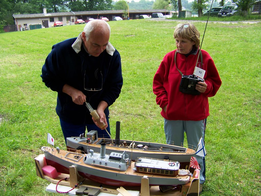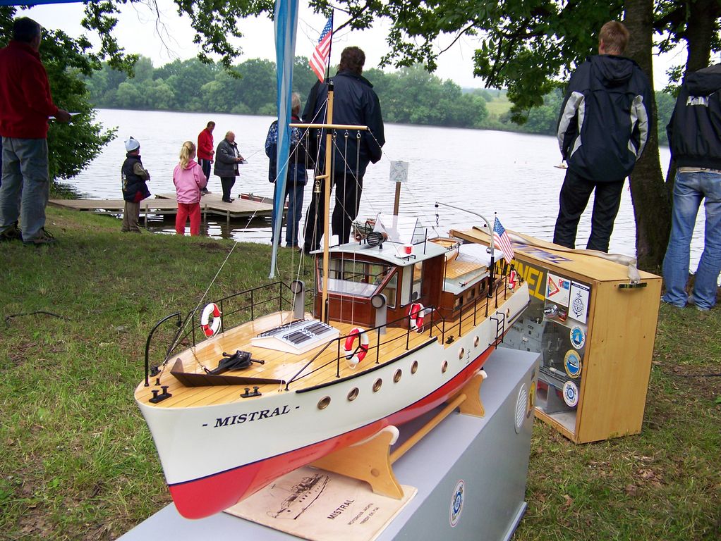 Kamarádi dávali svoje „poklady“ na vodu a nějak odplouvali, ale manželka měla nejlepší první jízdu. Byla druhá ve druhé, pan Kastner a Feichtenschlager s Resolvem a s Whisper Larissou převedli maximum. Loď Albermarle, jižanský obrněnec s dvěma šrouby, poháněný oscilačním čtyřválcem 10 mm pana Helmuta Pirkera zlobil, když v první jízdě měl jen 18 bodů a ve druhé 24. Chvílemi to vypadalo, že se loď potápí, takže záchranná loď jí přivezla, kontrola, oprava a znovu na vodu.