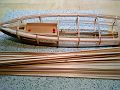 Jednotlivé lišty je potřeba zabrousit z důvodu přesného slícování. Plaňkování je provedeno vodostálým Soudalem, na příď a záď vlepíme balzové špalíky.