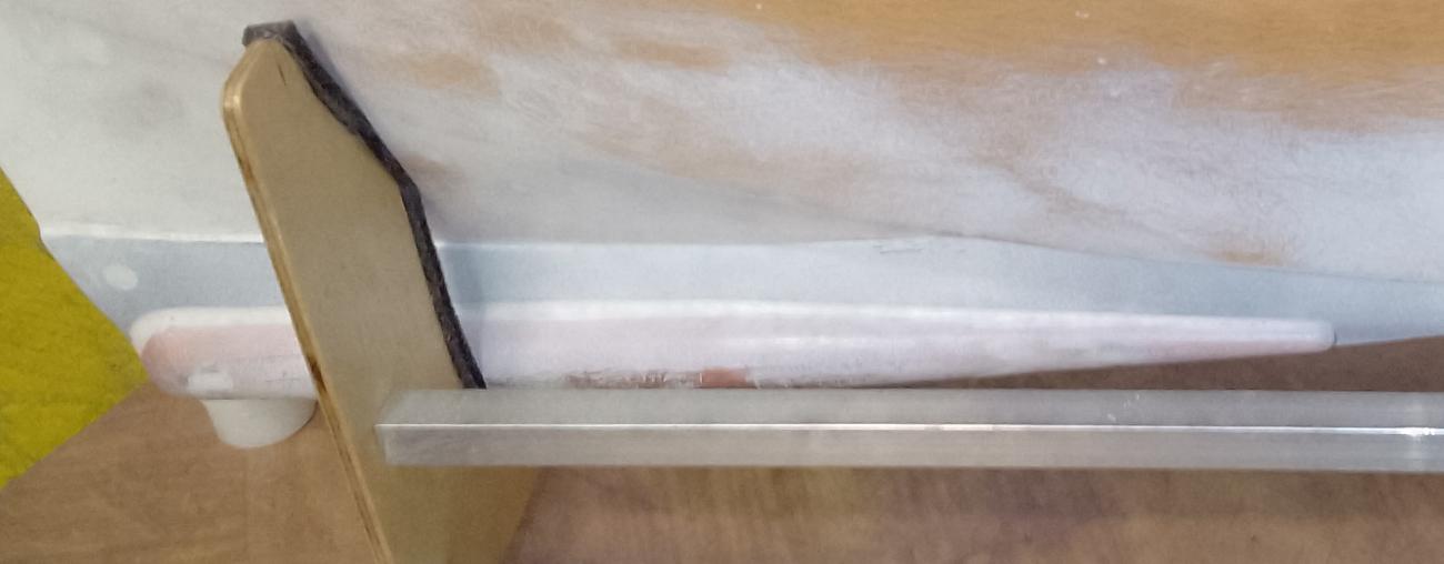 Ale pojďme popořádku. Loď jsem se rozhodl stavět tradičním způsobem, který jsem se naučil v osmdesátých letech. Tehdy našemu modelářském kroužku Delta Pardubice šéfoval jako vedoucí pan Josef Navrátil starší. Materiál na obšívku své nové pětistovky jsem použil překližku silnou 1 mm, uchycenou na žebrech z překližky tloušťky 3 mm. To vše přichycené na hliníkovém kýlu tloušťky 4 mm (obrázek 04). Jako lepidlo jsem použil tradiční EPOXY 1200.