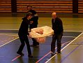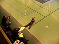 V hale bylo teplo a značně živo. Však jsem dorazil až v půl jedné, když pomalu končily lety akrobatů a schylovalo se k závodu kolem pylonů. Hned se chci znalcům omluvit, že do těch halových kategorií příliš nevidím, takže odbornější články naleznete v modelářském tisku. Rychlostní závod kolem dvou pylonů probíhal zhruba tak, že tři borci házeli na povel s odstupem sekundy letadla svých tří kolegů. Létalo se, tuším, na deset kol a o pády a srážky nebyla nouze. Ale narozdíl od pylonových speciálů se spalovacím motorem tyto malé elektrolety způsobí daleko menší škodu. Vzhledem k jejich velké rychlosti nepřináším žádnou fotografii, ale něco málo je snad patrné z videa.