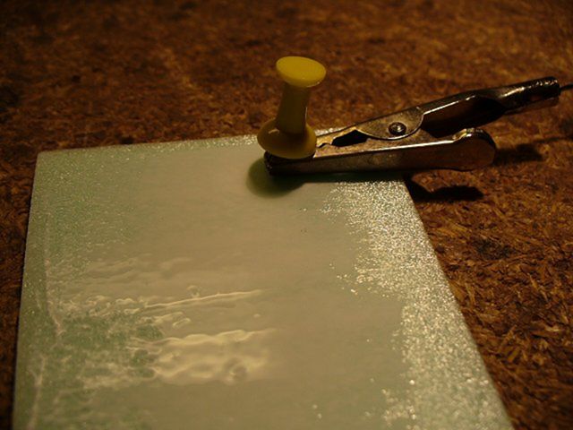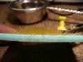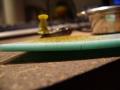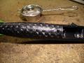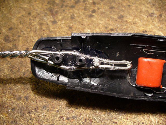 lepidlem a jedním šroubkem. Na držadlo jsem namotal jeden ze stříbrných drátků, které vedli do plácačky.