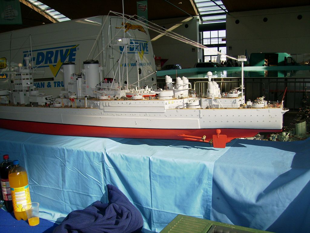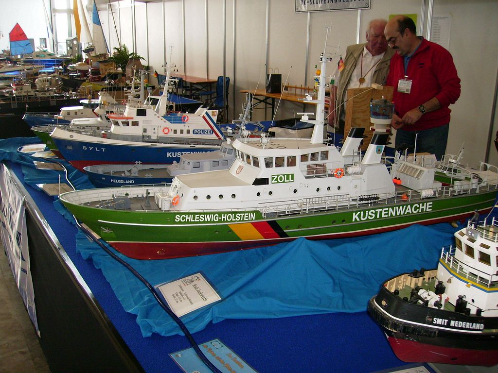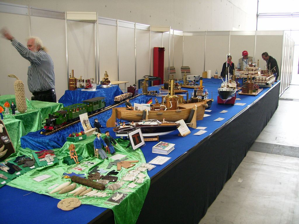Ale jinak dobré - naštěstí tam byl Conrad, nakladatelství s časopisy, modelářský materiál, pár zajímavostí, samozřejmě hromada modelů, které mně zajímaly, takže jsem až tak netrpěl. U našeho obřího stolu byli modeláři s parními strojky a loďmi, moc pěkně jsem si popovídal nad jejich strojky a modely, skamarádili jsme se s pár vystavovateli, opravdu milí lidé, vyměnili si adresy a maily a pošleme si svoje obrázky. Tohle vyrovnalo eventuelní nepříjemnosti kolem dlouhého působení v hale s tisíci diváky, dokonce i manželka byla spokojená s navázanými vztahy. Vedle nás seděla paní, co pletla plavky a šatečky na paňáčky a panenky a oplétala či štrykovala potah na Fendery či oděrné balónky, vařila kafe a holky si prostě povídaly a já se zase motal kolem parních udělátorů a lodí a krátil si chvíli kolem zajímavostí, jak jinak.