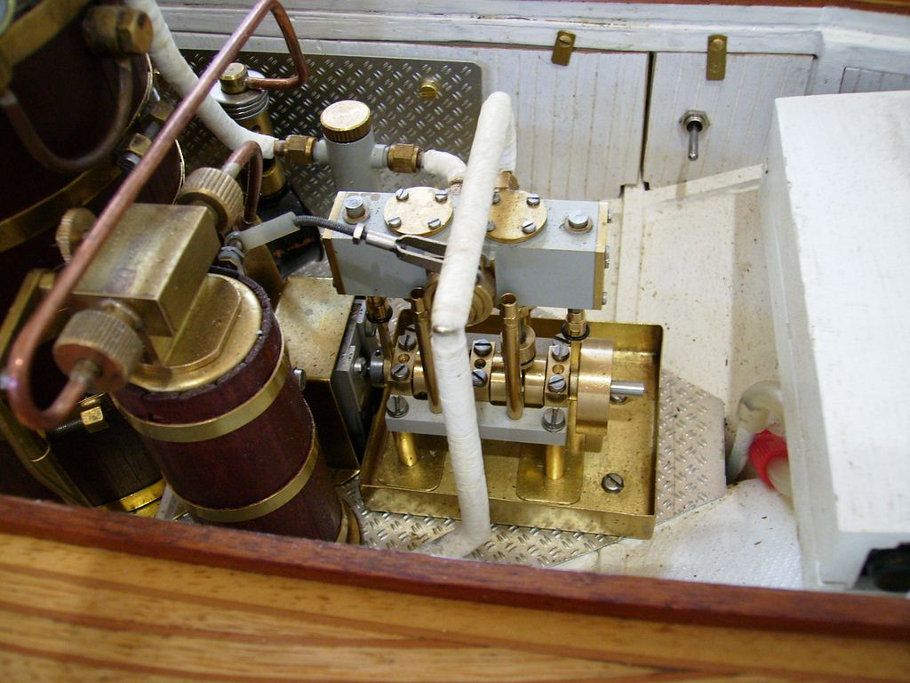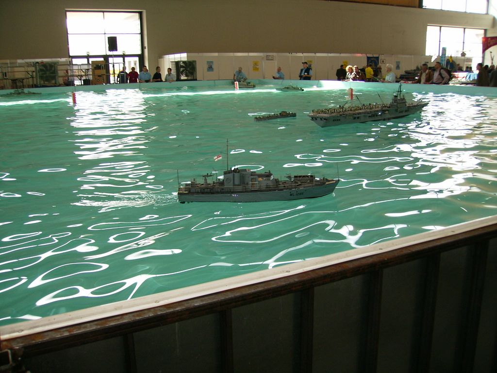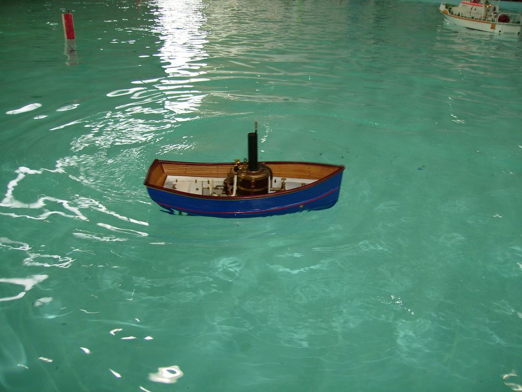 Nechci obtěžovat líčením okolností (je to drsné). Zkrátka jsem se nějak k tomu namotal a nedalo se uhnout, takže nakonec jsme s manželkou seděli za vystavovacím stolem, 2 až 3x denně popadli svoje lodě a drandili na obřím bazénu, a během dne jsem já nebo manželka tak 50x vystartoval k ventilu Parního Prkna a předváděl, že se strojky na něm opravdu točí. Cvičená opice by to nedokázala líp![]()