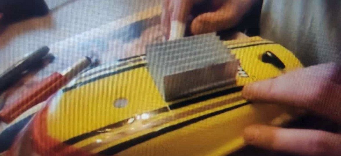 Po otevření lodi jsem si vyřízl otvor ze spodní strany duté kabiny. Dále jsem vyřízl otvor s kresbou čelního skla, kde měla být původně kamera. A další otvor pro chladič video vysílače. A na závěr pak vyvrtání otvoru pro anténu právě zmiňovaného video vysílače. Chlazení jsem navrhl zejména proto, že za letních tropických dní, kdy teploty atakují hranici 30 °C ve stínu a vysílač sám hřeje, navíc vše je uzavřené v kabině, kde není žádné odvětrávání, takže může dojít snadno k přehřátí. Hliníková žebrovaná destička vede teplo velice dobře a nepodléhá korozi. Ta je do otvoru vlepená lepidlem na mobilní telefony B7000, protože po zaschnutí je lepidlo tepelně odolné, vodě odolné a zachovává si určitou pružnost. Abych tento efekt odvádění tepla ještě umocnil, využil jsem silikonové tepelně vodivé oboustranné pásky která vysílač navíc udrží na svém místě. Dále jsem vše potřel tepelně vodivou pastou, která je pro obvody nevodivá a používá se k chlazení procesorů v PC.