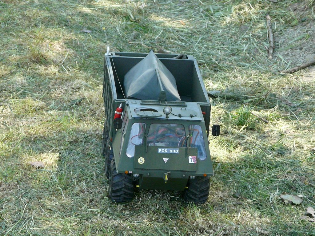 Počasie výborné až na vlny, takže mini modely si nezaplávaly, ale zato sa jazdilo s voj. technikou. Ja som si zajazdil namiesto s mini Benjamínom s novinkou - plávajúcim náklaďákom Stanwald anglickej armády z roku 1962.