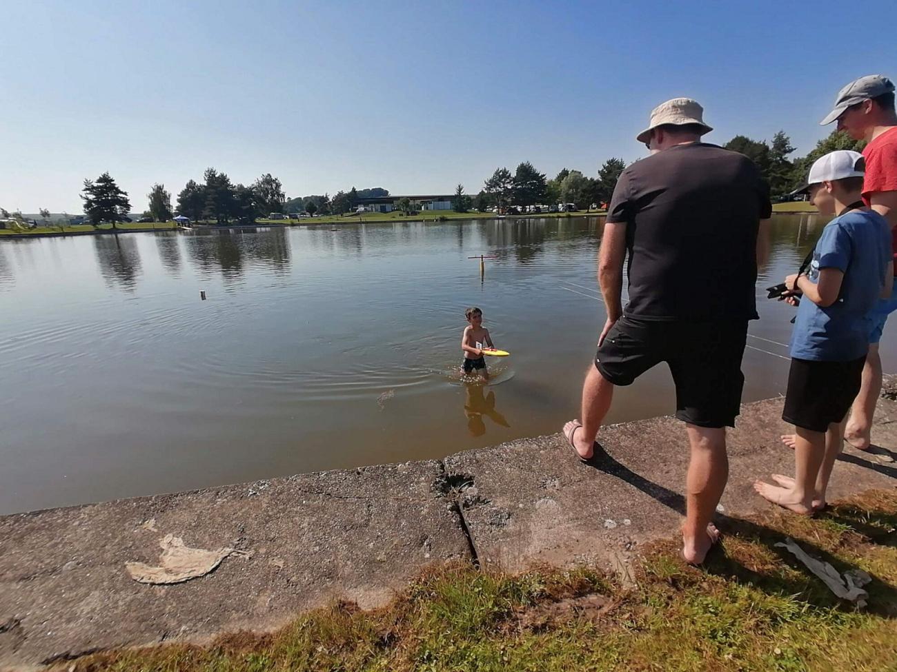 Díky otevírání koupaliště se u nás modelářů také zastavilo dost přihlížejících nebo procházejících návštěvníků kempu s dotazy na závody lodiček. Ovšem některé z nich nakonec odradilo zjištění, že tyto lodičky se v obchodech koupit nedají, ale že si je musí nejdříve závodníci postavit sami…