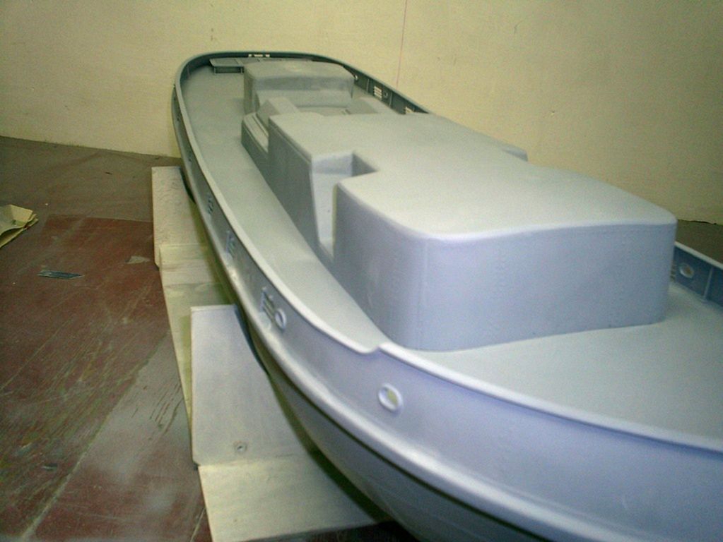 Další práce se ubírají k tvorbě dřevěného pokladu paluby a koncepce horních nástaveb z lipových a mahagonových lišt.