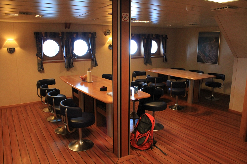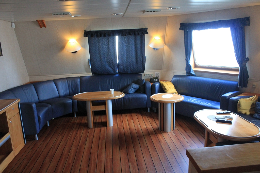 Na druhý den jsme měli sraz s kapitánem před naším kempem. Vedl nás až do přístavu, kde jsme zaparkovali vedle jeho lodi. Byl to neskutečný pocit. Kapitán nám nejdříve chtěl ukázat prezentaci své lodi na počítači a tak nás zval nejdříve do společenské místnosti. A to byl první šok. Hned v první „místnosti“ na lodi (což byla taková předsíň s převlékárnou a kuřárnou dohromady) nám ukázal na koš s igelitovými návleky, se kterými se setkáváme u zubaře. V duchu jsem si říkal: „Tak my jsme na rybářské lodi a tady si máme obléci návleky?“ Asi si všiml mého údivu a přispěchal s vysvětlením, že se snaží udržet na lodi pořádek. Když jsme přišli do společenské místnosti, pochopili jsme. Dřevěná podlaha, stolky, křesílka. Rovněž v kajutách, které jsme měli možnost shlédnout následně, bylo čisto, uklizeno. Každý člen posádky má k dispozici svoji kajutu, ve které má postel, sociální zařízení a televizi s 5 programy. Ve společenské místnosti je potom další, větší televize, kde jsou k dispozici i satelitní programy. Loď má 13 kajut a dokonce i ošetřovnu. 2 až 3 členové posádky mají určitý zdravotnický kurz, aby byli schopni v případě potřeby pomoci, popř. i zašít ránu. Jednu posádku tvoří 10 až 11 členů a střídají se.